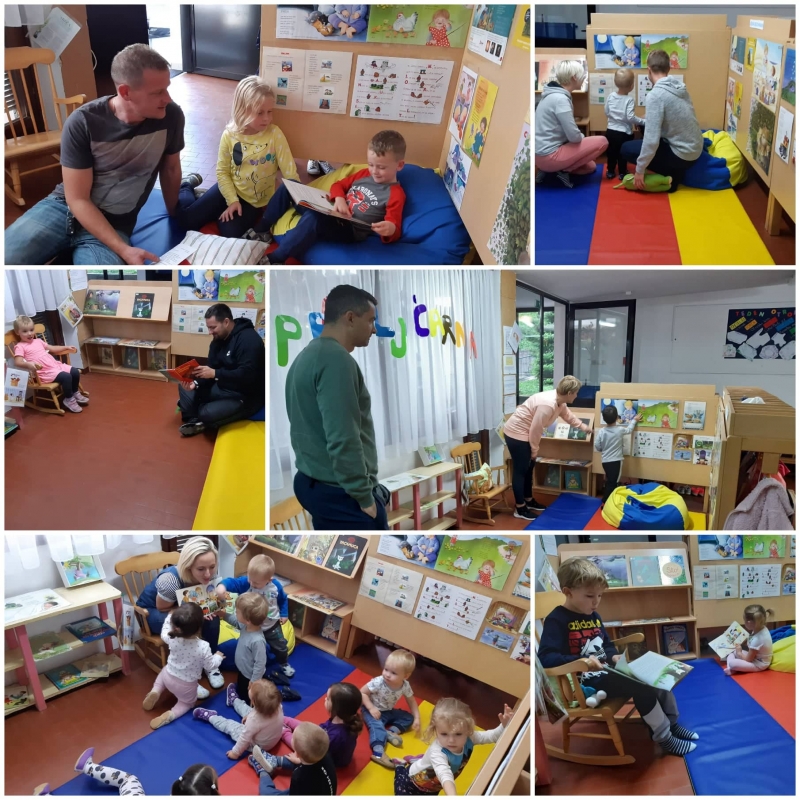 V okviru natečaja Pravljični svetovi, smo v naši enoti ustvarili kotiček posvečen umetnicama Svetlani Makarovič in Jelki Reichman. »Pravljični svet« smo si v naši enoti zamislili malo drugače, saj smo želeli umetnici (Makarovič in Reichman) predstaviti čimvečjemu številu otrok in staršev. V veliki garderobi smo s premikom in reorganizacijo pohištva postavili in ustvarili intimni zamik za branje otrok in staršev, posvečen omenjenima avtoricama. Našo »Pravljičarno« (kot smo jo poimenovali) krasi nekaj udobnega pohištva, preproga, izbrana dela avtoric Makarovič in Reichman iz revij Cicido in Ciciban, slikanice, članki, dodali smo še bralni bonton in pravila uporabe, ter starše seznanili z namenom zamika in jubilejem, ki ga avtorici v letošnjem letu praznujeta. Zamik »Pravljičarna« je staršem in otrokom, ki obiskujejo našo enoto (vključenih imamo 206 otrok) na voljo ves dan, največ obiska pa je v času prihodov in odhodov otrok v vrtec in iz vrtca, medtem ko strokovne delavke opisan zamik uporabljamo tudi za realizacijo izvedbenega kurikuluma, ob popoldanskih srečanjih s starši.