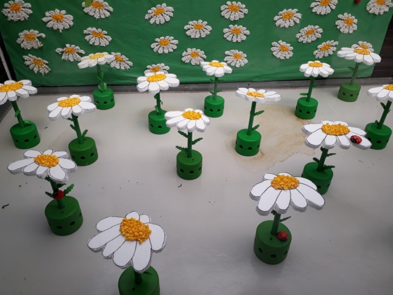 Skupina 4-5 letnikov, Čukci smo sončne dneve izkoristili za sprehode in raziskovanje okoliških travnikov. Nabrali smo precej različnih vrst travniških cvetlic in jih s pomočjo knjig in interneta poimenovali. Cvetlice smo vohali, jih tipali, jih med seboj primerjali in iskali podobnosti in razlike. Nato si je vsak otrok izbral eno od cvetlic, ter jo naslikal. Z mnogo tipnih, vidnih, čutnih in drugih izkušenj so nastale prave umetnine. Ustvarjali smo s črnim alkoholnim flomastrom in vodenimi barvami. Tudi vam jih dajemo na ogled.