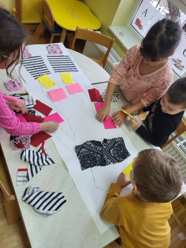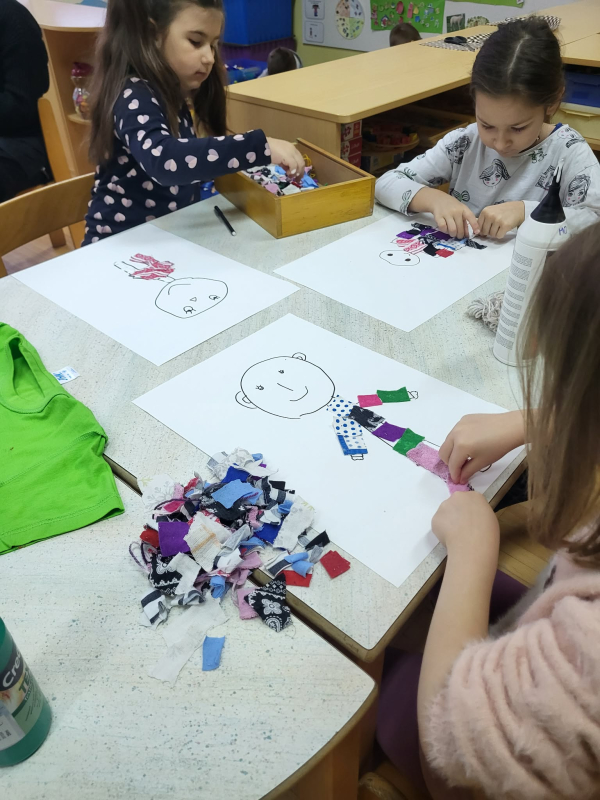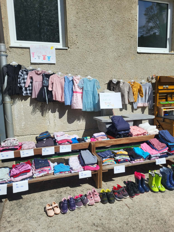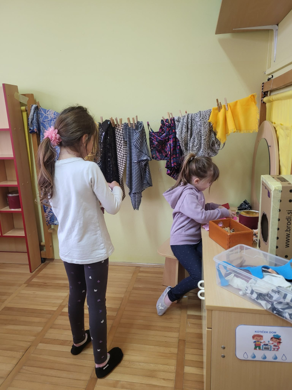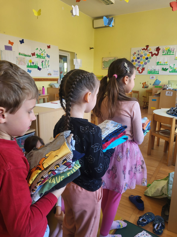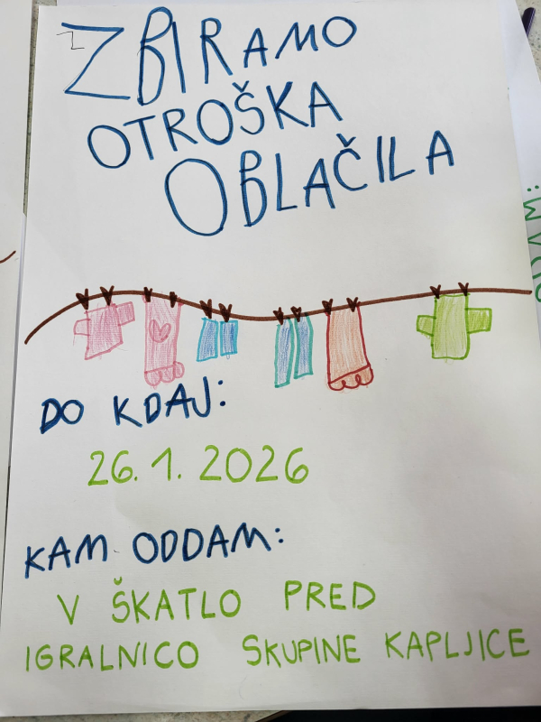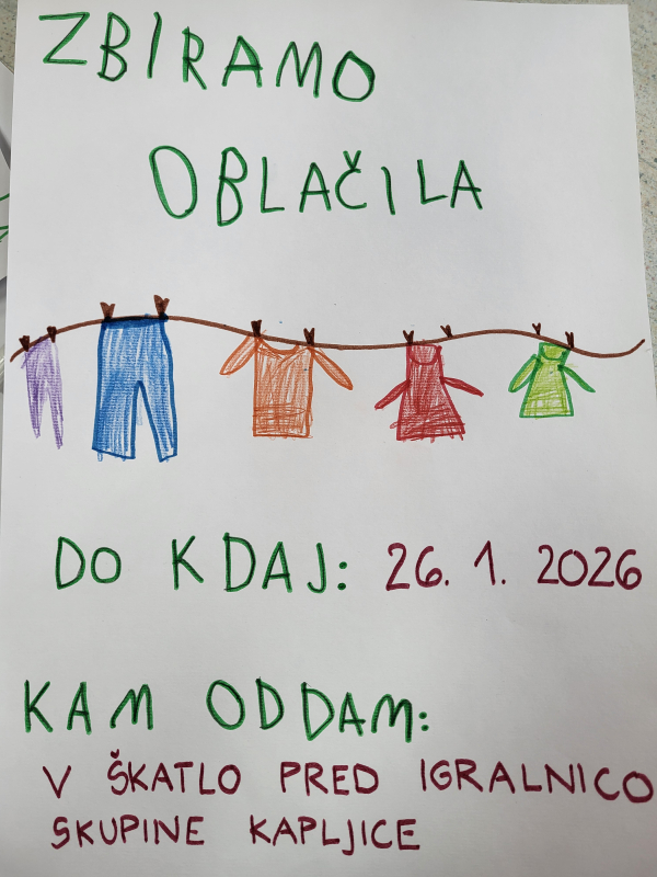 Najstarejša skupina Kapljice sodeluje v projektu Ne zavrzi oblek, ohrani planet. Namen projekta je spodbuditi zavedanje o odgovornem ravnanju z rabljenimi in odsluženimi oblačili. Raziskovali smo, iz česa so oblačila narejena in pokukali v vrtčevsko pralnico, kjer smo spoznali kako poteka delo - od pranja do likanja, zlaganja in celo šivanja. Na enoti smo organizirali sejem Izmenjevalnica oblačil. Ko smo oblačila zbrali, si je vsak otrok izbral svoj najljubši kos in se ponosno sprehodil po ''modni pisti''. Oblačila, ki so še ostala, bomo z veseljem podarili Rdečemu Križu Slovenije. Seveda pa nismo pozabili na igro - naš kotiček dom smo spremenili v pralnico, iz odpadnega tekstila pa smo likovno ustvarjali.