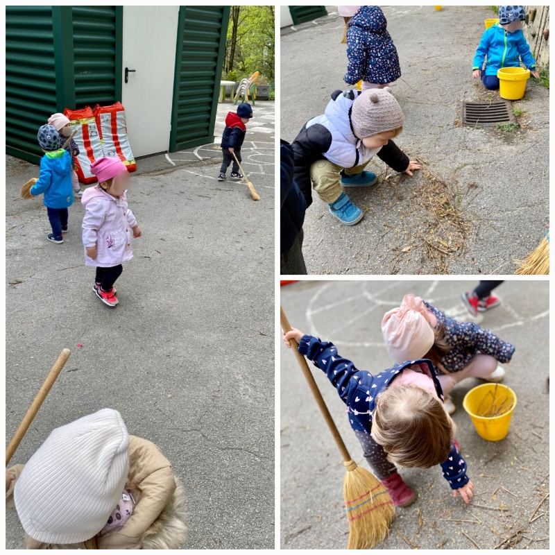 Otroške roke počnejo mnogo stvari: zlagajo kocke, objamejo starše in prijatelje, vrtajo po nosu, ploskajo ob prepevanju, mahajo v pozdrav in ... urejajo okolico vrtca!Danes so v okviru očiščevalne akcije poprijele za lopate, metle, grabljice, vrečke in samokolnice ter pomagale pri odstranjevanju listja, večjih kamnov in vej z igralnih površin našega vrtca. Velike roke vzgojiteljev so jim pri tem pomagale. Ker nas je bilo veliko, smo tudi naredili veliko in pogled na urejeno okolico je seveda zelo prijeten. Ravno tako smo poskrbeli za okoliški travniku in bližnji gozd, kamor občasno zahajamo. Razbremenili smo ju smeti, kajti ko diha narava, dihamo z njo tudi mi.