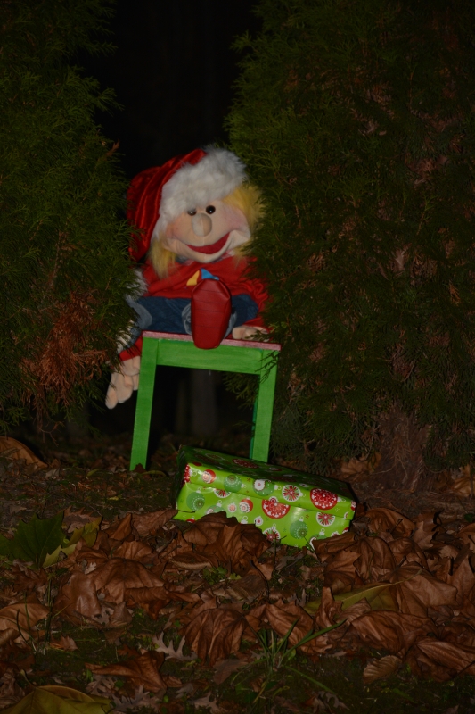 In prišel je dan našega srečanja. Zbrali smo se pred vrtcem, vsak otrok je dobil svojo svetilko v kateri je gorela svečka. Pa smo odšli – iskati zimskega škratka. In ga tudi našli. Sedel je med drevesi pred seboj pa je imel darilno škatlo. V škatli so bili bomboni in pismo v katerem je pisalo, da nas zimski škrat vabi v vrtec na presenečenje.