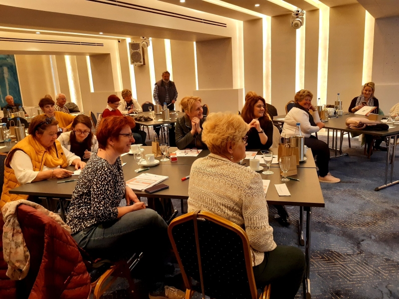 Na 2. projektni trening smo se strokovni delavci vrtca skupaj z upokojenci prostovoljci odpravili v Limassol na Cipru. Udeleženci štirih držav smo na praktičnih delavnicah izdelovali uporabne izdelke iz odpadnih materialov: Barvite stole, Dida tablo, Ročne lutke, Lutke iz tulcev, Hišice za ptičice in čebele. Izdelke smo na lokalnem festivalu predstavili lokalni skupnosti in otrokom iz vrtca, ki so na festival prišli v družbi starih staršev.